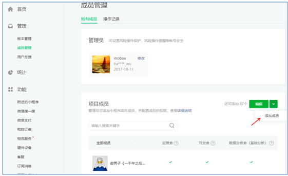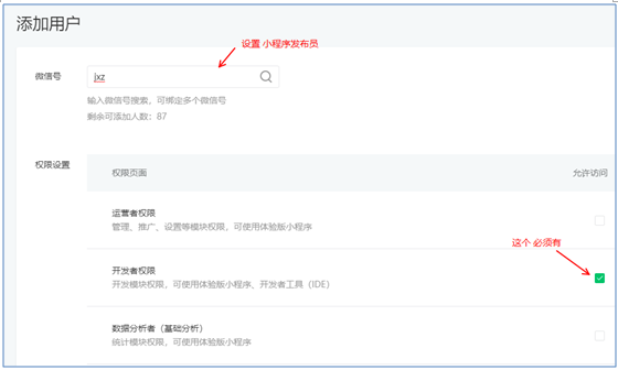 2)將我方小程序支持人員,設置為小程序開發者,并提供企業微信的參數