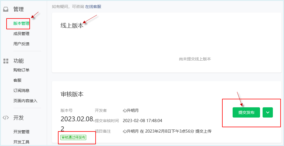5、等待小程序開發人改進程序,并提交等待審核通過