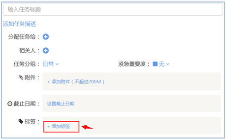 - 標簽在任務創建彈框如下圖所示,如果要刪除標簽,點標簽后面的“X”