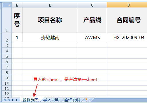 這個系統(tǒng)只能導入,左邊第一個sheet (命名無所謂)(注意:若數(shù)據(jù)列表 這個sheet左邊還有隱藏的sheet,那么系統(tǒng)也不能獲取 數(shù)據(jù)列表sheet頁的數(shù)據(jù))