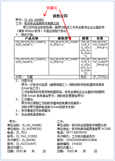 - 我們利用企業(yè)現(xiàn)有的合同模版,對(duì)里面的:甲方、乙方、采購(gòu)清單、單價(jià)、總價(jià)等內(nèi)容先變量化。我們稱之為:格式化合同模版