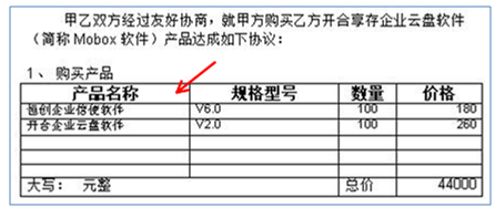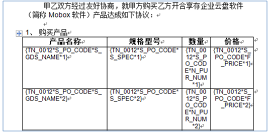 其中,購(gòu)買產(chǎn)品是一個(gè)采購(gòu)清單,屬于合同的關(guān)聯(lián)表,其變量定義解釋