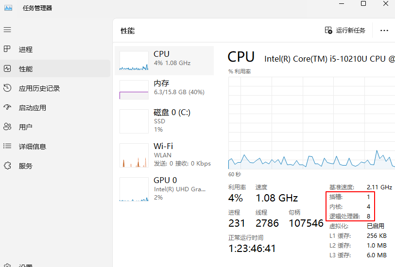 - 在該選項框中,即可看到CPU、GPU的核心數(shù)以及相關(guān)的信息。
