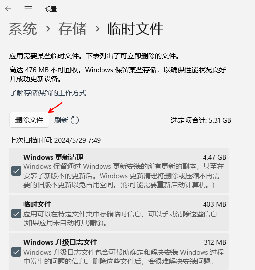 “系統(tǒng)”一“存儲(chǔ)”一“臨時(shí)文件”,進(jìn)入臨時(shí)文件頁(yè)面后,你可以選擇刪除這些臨時(shí)文件。這些臨時(shí)文件是暫時(shí)產(chǎn)生的系統(tǒng)文件,它們可能占用了你的電腦內(nèi)存空間
