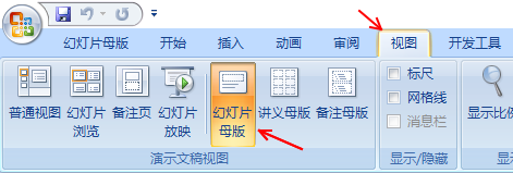 在菜單欄中選擇“視圖”選項卡,然后點擊“幻燈片母版”按鈕。這將切換到母版視圖,允許您對版式進行編輯。