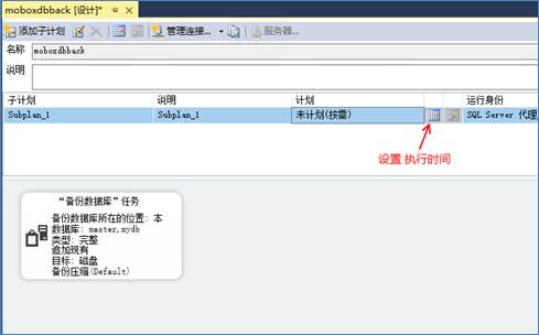 5、單擊“子計劃時間表”(日歷圖標)以設置SQLserver自動備份頻率