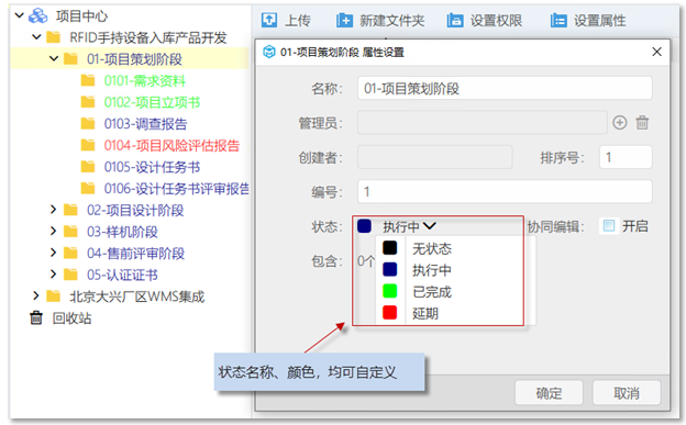 2)可以設置項目個節(jié)點完成狀態(tài)