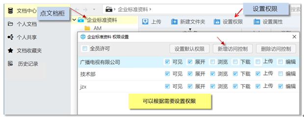 文檔中心保存的是公司的一些基礎性文檔,如公司的管理制度,各種管理表單,技術基準等非常通用性的文檔,如果沒有進行特別的權(quán)限設置理論上單位網(wǎng)盤中的文檔對全體成員開放。