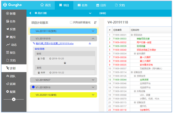 PCO單子審核通過后,項目計劃會根據單子進行自動變更。從而計劃會產生新版本,項目計劃之間的版本可以通過查詢PCO單子能知道版本間的差異點