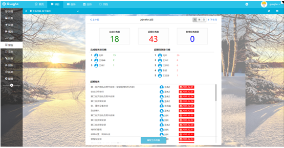 能對本項目的任務執行狀態進行統計分析,能看到完成的排行等信息