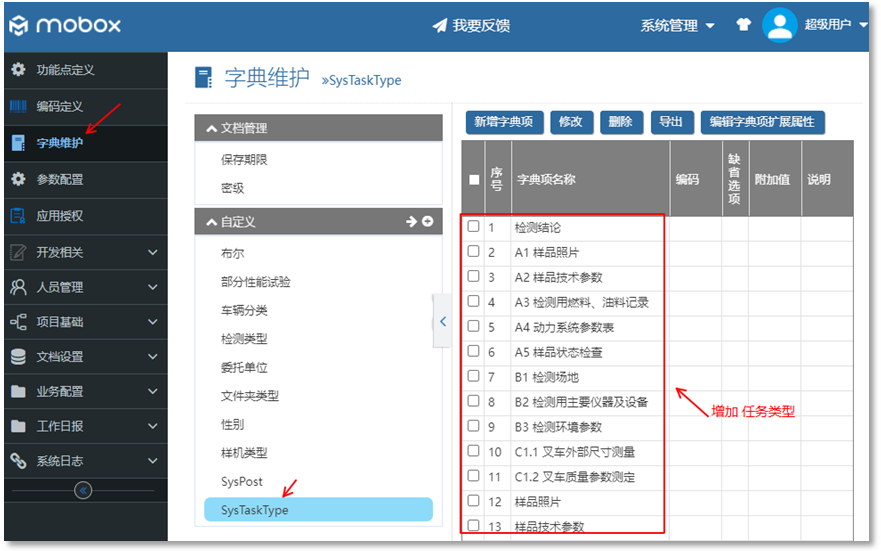 自定義里面是將任務(wù)與Mobox的功能點集合在一起