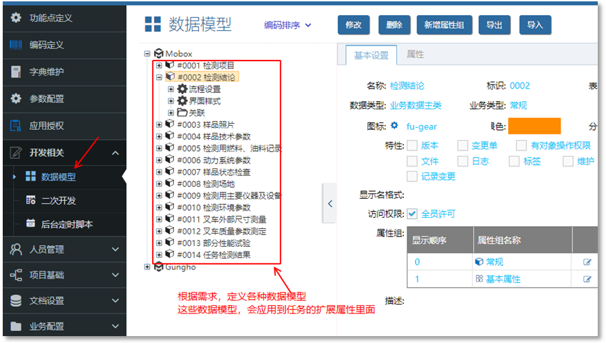 按需分別定義數(shù)據(jù)模型,及模型里面的字段。這里不詳細展開(需要有mobox二次開經(jīng)驗)