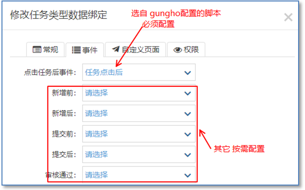 注意:點擊任務(wù)后事件 是必須選擇( 來源: gungho領(lǐng)域 – TASK任務(wù) – 某自定義事件)