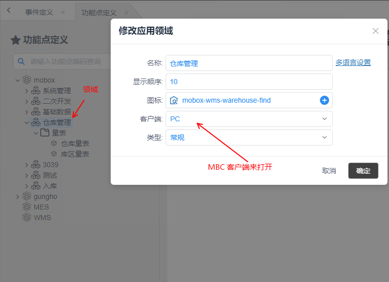 通過Mobox 3000 功能點進行定義,設(shè)置界面如下: